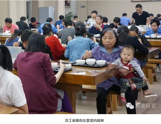除了給員工提供餐飲之外,“雙童”也鼓勵員工的家人一起在餐廳就餐,員工家屬在食堂就餐收取一半成本費用,盡量解決員工在工作之余不再忙于家務(wù)!