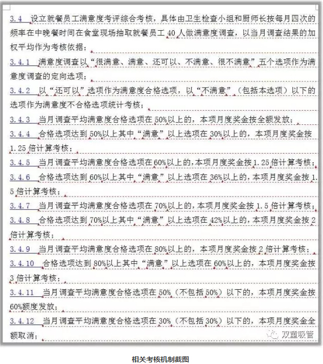 除此之外,我們設(shè)立了就餐員工滿意度綜合考核,按每月四次在食堂現(xiàn)場抽取就餐員工進行滿意度調(diào)查,廚師的考核獎金也直接和員工的滿意度掛鉤,盡力滿足員工們的就餐需求,足以見得“雙童”對員工餐飲的重視!