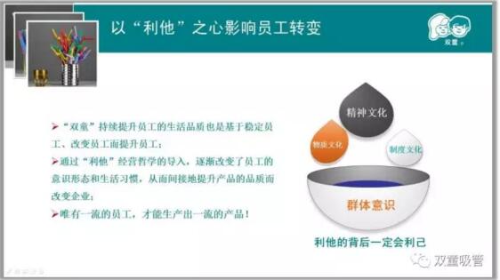 通過員工喜聞樂見的形式,灌輸企業(yè)價(jià)值觀,潤(rùn)物細(xì)無聲地將“雙童”的企業(yè)文化落地生根,有聲有色地在企業(yè)全員中開展,并形成"雙童"獨(dú)特開放、包容、快樂的企業(yè)文化氛圍,通過文化的作用是讓員工形成自律,從而全面提升員工整體素養(yǎng)!