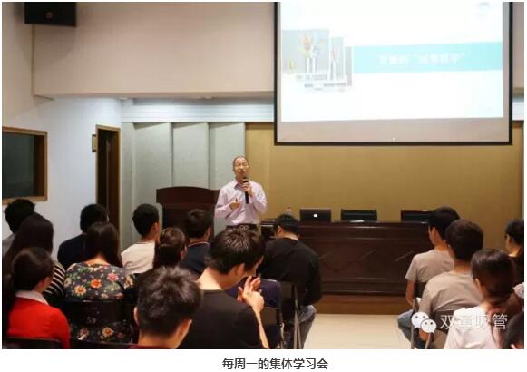 在“雙童”,開展最多的活動一定是教育活動。新員工剛?cè)霃S,我們就會開展新員工培訓工作。不僅如此,每周一的晚上,我們還會舉辦2個小時的全體員工學習會,學習公司的規(guī)章制度、企業(yè)文化,引導大家成為“雙童”工匠。另外,還有行政員工學習會、各部門和各班組開展的內(nèi)部學習會……每個“雙童”人都要保證每月8小時以上的學習時間!可以說,“雙童”也是一所大學!