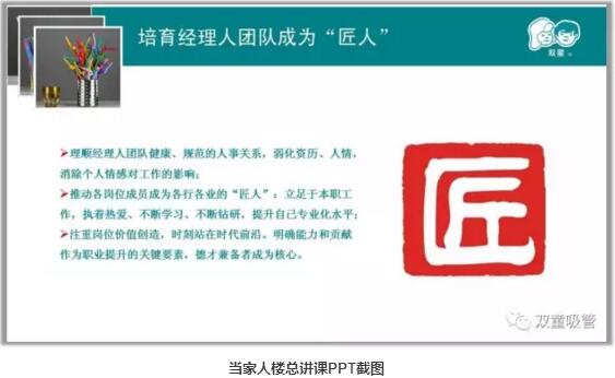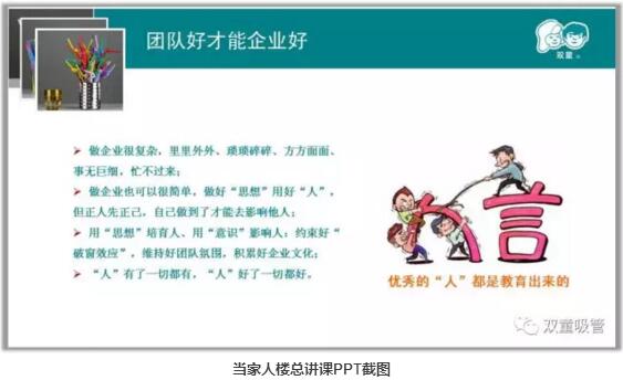 明確了以上問題,原先在大家印象中復雜敏感的團隊問題迎刃而解,管理團隊、培養(yǎng)人才變得非常簡單。用“思想”培育人,用“意識”影響人,用“制度”約束人,維持好團隊氛圍,積累好企業(yè)文化,何愁企業(yè)無人可用呢?正是因為有了內(nèi)心幸福、關系簡單、一切圍繞工作展開的“雙童”管理團隊,“雙童”才能發(fā)展得越來越好!親,你明白了嗎?