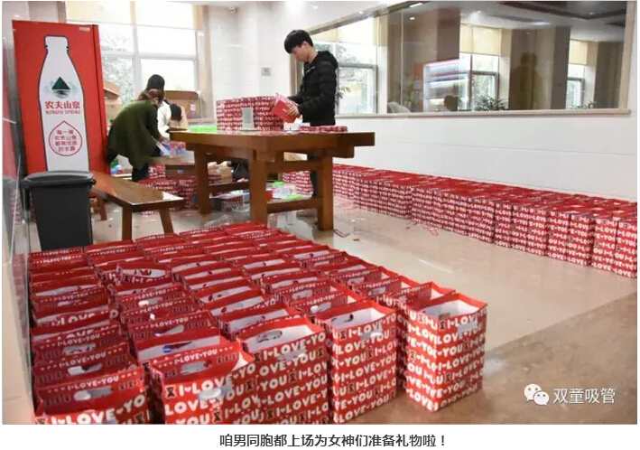 一套套紅彤彤的禮物套裝,男同胞們就是想拿,也不好意思呀!哈哈,看我們的女神們排著隊(duì)高興的樣子,別急別急,留一套給吸管妞哈!