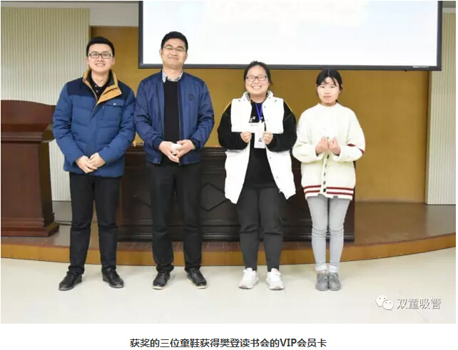 昨晚7點(diǎn)整,“雙童”行政人員的學(xué)習(xí)會(huì)在九樓閣準(zhǔn)時(shí)召開。與其說(shuō)這是一場(chǎng)學(xué)習(xí)會(huì),還不如說(shuō)是一場(chǎng)學(xué)習(xí)分享會(huì)呢!在分享會(huì)開始之前,我們也進(jìn)行了隆重的頒獎(jiǎng)儀式,為上一場(chǎng)讀書分享會(huì)中獲獎(jiǎng)的三位童鞋頒發(fā)了樊登讀書會(huì)一年的VIP會(huì)員卡,以此學(xué)習(xí)到更多的知識(shí)!