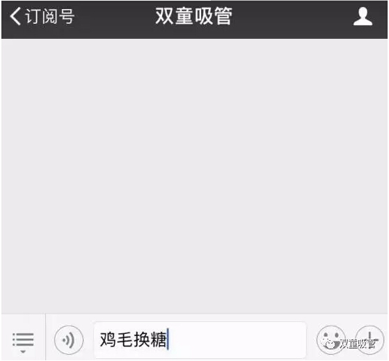 步驟一:在“雙童吸管”微信后臺(tái)回復(fù)“雞毛換糖”