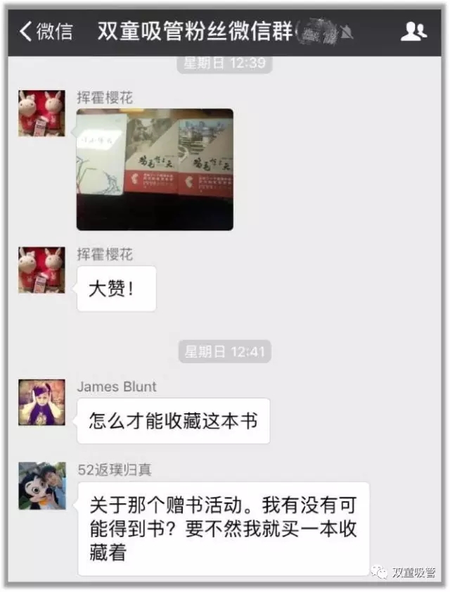 這不,前幾天,吸管妞在微信上舉辦了《雞毛飛上天》贈(zèng)書(shū)活動(dòng),反響之好讓吸管妞嚇了一大跳,原來(lái)還有這么多的粉絲對(duì)當(dāng)家人樓總“雞毛換糖”的經(jīng)歷感興趣呢!其中,也有一些“雙童”鐵粉在收到書(shū)以后給妞發(fā)微信以示感謝,讓妞非常感動(dòng)。