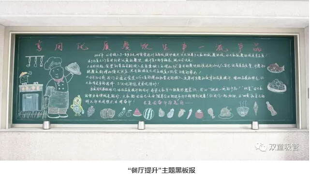 “雙童”員工餐廳配備了五星級的設(shè)施,有了硬件的保障才能確保餐飲的持續(xù)提升!為了讓員工們對此次餐飲提升有更全面的了解,我們文宣科也特地出了一期以餐飲提升為主題的黑板報(bào)呢!