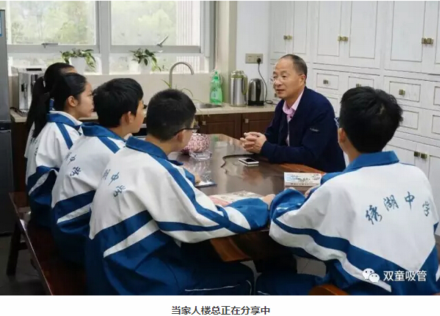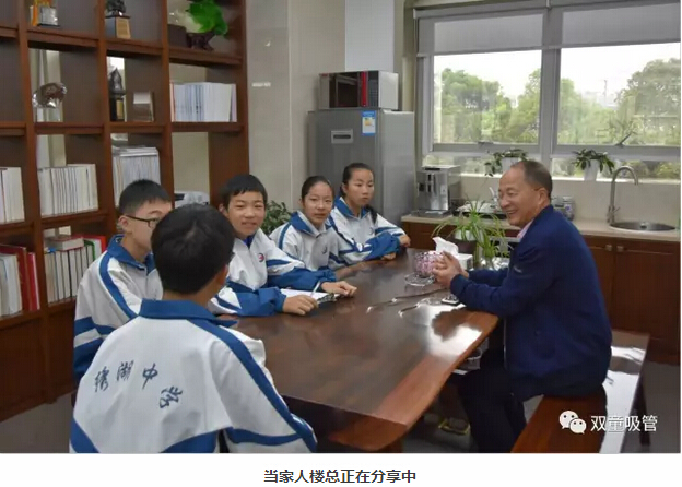 沒想到樓總的分享在繡湖中學掀起了一股熱潮,這不,幾位繡湖中學的學子專門以《雞毛飛上天》做了專題的社會實踐報告,榮獲了學校的第三名,并將代表學校參加市里的比賽呢!為此,上周六,繡湖中學的幾位參賽學子及家長代表來到“雙童”,和當家人樓總進行深入交流!