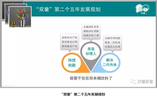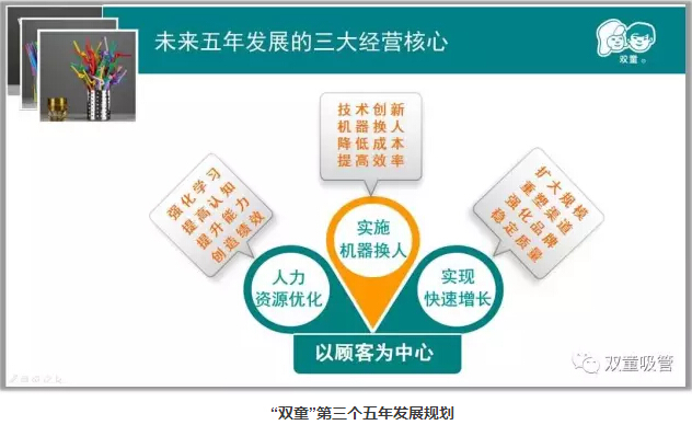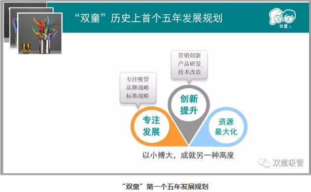 “雙童”堅持走專業(yè)化的發(fā)展道路,堅守實業(yè),不多元,不浮躁,不急功近利,強調(diào)“以小博大”,“博”不是拼搏的搏,而是博大的博,就是要以博大的胸懷將一根吸管做精、做強、做到極致。