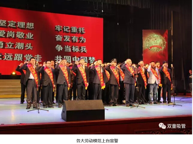在激動人心的頒獎環(huán)節(jié)之后,所有的勞動模范也一起上臺宣誓,錚錚誓言,道出了每名勞模的心聲,激勵著每名勞模和廣大職工奮勇前進(jìn)!