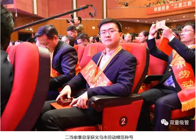 在義烏市長林毅發(fā)表講話之后,副市長施文臻宣讀了義烏市勞動模范、模范集體名單,各勞動模范及模范單位代表上臺接受表彰!這其中也包括了我們的二當(dāng)家李二橋呢!