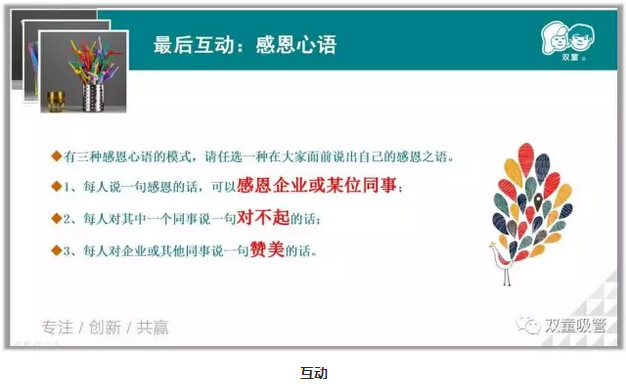 課程的最后,吸管妞也鼓動童鞋們向企業(yè)、領導、同事表示自己埋藏在心中的感謝!