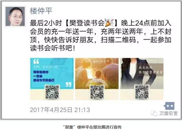 對此,“雙童”樓仲平表示,他非常高興可以影響這么多好友加入讀書會,因為正面影響他人是一件非常神圣的事情,一年投入365元,就可以學(xué)習(xí)到各類經(jīng)典好書,不僅開闊了自己的視野,還提升了自身的認(rèn)知水平,甚至有可能會改變自己的命運!