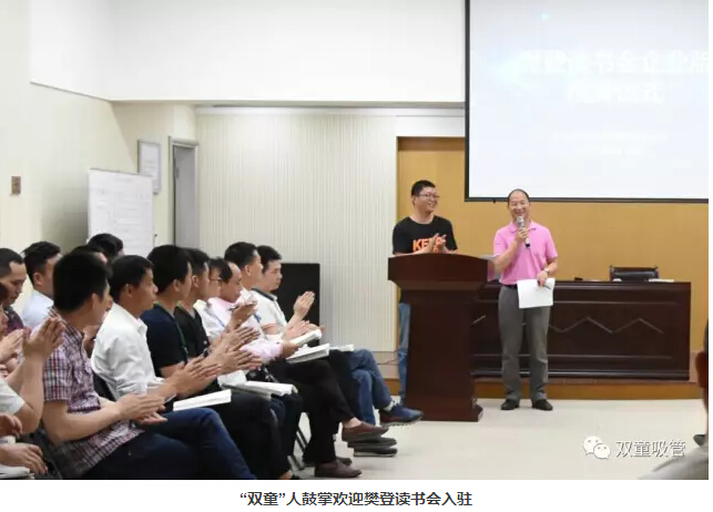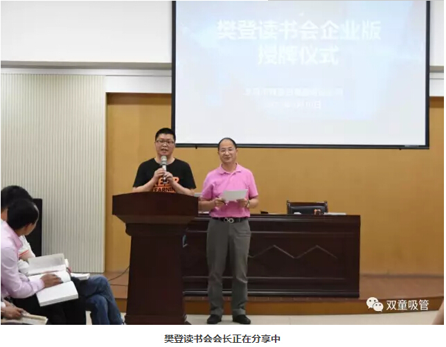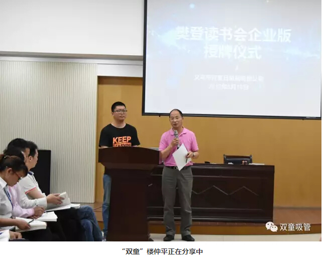 其實,這次的授牌儀式并不是臨時起意,而是淵源頗長。早在去年樊登讀書會剛成立之初,“雙童”樓仲平就已經(jīng)關(guān)注并加入了樊登讀書會。據(jù)樓總自己介紹,自從加入樊登讀書會,他就將每天早晚的兩個小時走路鍛煉時間與之相結(jié)合,邊鍛煉邊學(xué)習(xí),通過樊登讀書會的說書音頻,每天都可以聽一本精彩的書籍,學(xué)習(xí)到了許多有用的知識。