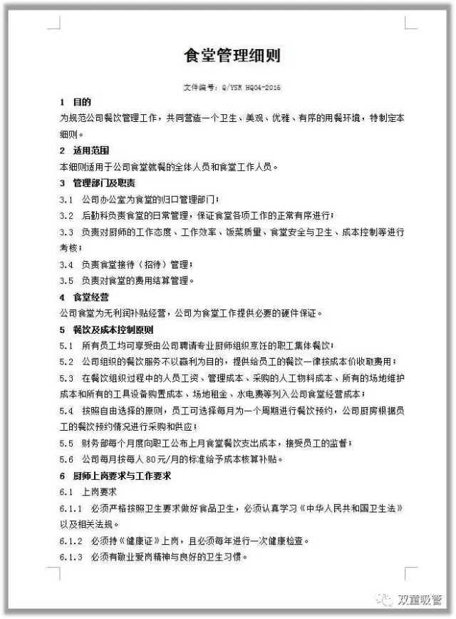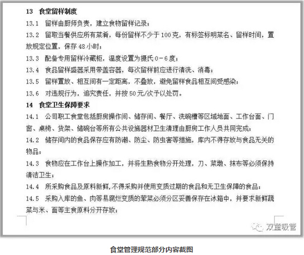 食堂管理規(guī)范部分內(nèi)容截圖