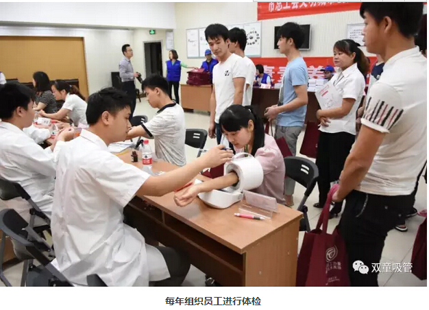 除了優(yōu)質(zhì)的餐飲住宿,活動旅游,員工的身體健康也是我們最關(guān)心的話題。這不,“雙童”每年都會安排3次的員工體檢,請醫(yī)院專業(yè)體檢團(tuán)隊(duì)到廠內(nèi)給員工進(jìn)行現(xiàn)場免費(fèi)體檢。除此之外,我們也會組織女職工到醫(yī)院做免費(fèi)的婦科檢查。通過這樣的方式讓員工了解自己的身體情況,預(yù)防了疾病的發(fā)生!