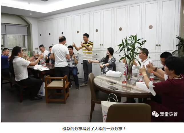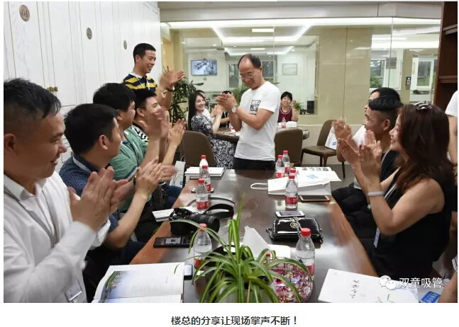 參觀結(jié)束后,大家回到了行政中心,與“雙童”樓仲平進(jìn)行深入交流。首先,“雙童”樓仲平也結(jié)合自身經(jīng)歷和大家分享:“永遠(yuǎn)把自己定位在25歲,不斷學(xué)習(xí)去認(rèn)知新的世界,去擁抱這個(gè)高速變化的世界,從而影響團(tuán)隊(duì)并保持“雙童”不被淘汰。” 所以,樓總每天都利用碎片化時(shí)間進(jìn)行學(xué)習(xí)閱讀,并影響團(tuán)隊(duì)不斷進(jìn)行學(xué)習(xí),提升自己的認(rèn)知!