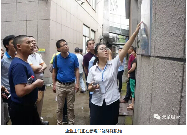 參觀的第一站是我們的節(jié)能降耗系統(tǒng)!吸管妞向大家詳盡地介紹了廢水回用系統(tǒng)、雨水收集系統(tǒng)、垃圾分類系統(tǒng),光光是雨水收集系統(tǒng),每年就能為“雙童”節(jié)約100萬水費呢!企業(yè)主們對“雙童”這種生態(tài)循環(huán)、節(jié)約資源的做法十分認可,更對樓總多年前能有這樣的環(huán)保理念十分敬佩!