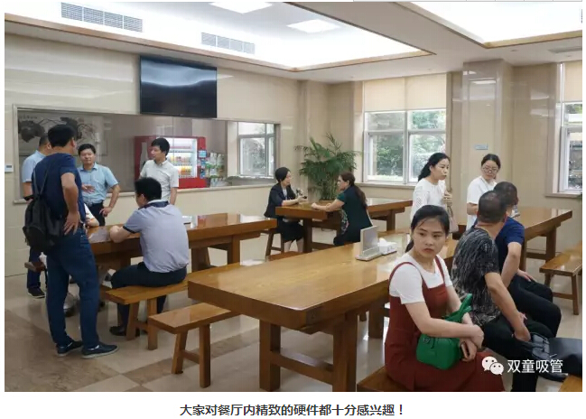 來到員工餐廳時,大家都被餐廳內(nèi)精致的硬件吸引,吸管妞也介紹道:“員工吃飯的地方要配備最好的硬件,餐廳內(nèi)的每一張桌子都是由木中之王的柚木定制而成,每一張就要1萬多元!