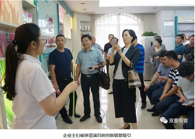 移步樣品房,大家都被琳瑯滿目的各類吸管所吸引,尤其是各類功能情趣的創(chuàng)新吸管,它顛覆了大家腦海里幾分幾厘的普通吸管,而是轉(zhuǎn)變?yōu)閹讐K錢一支的高端產(chǎn)品,更是讓每個人都嘖嘖稱奇,贊嘆“雙童”的創(chuàng)新力之強!