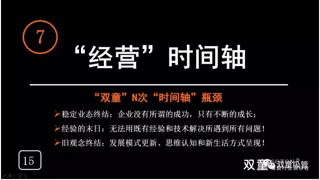 “但僅僅在學校學習是不夠的,我們這個時代面臨著高速發(fā)展、變更和迭代。在這個時代下存在著認知時間軸,你昨天認為對的東西,今天其實正在改變,現(xiàn)在商業(yè)知識的周期是3.2年,也就是3.2年以前的商業(yè)知識就已經(jīng)沒用了,如果你要著力于你的企業(yè)不被淘汰,你就必要終身學習。還有一點就是經(jīng)營時間軸,許多企業(yè)剛開始很成功,到后來卻越來越難生存下去,會遇到瓶頸和“天花板”。企業(yè)沒有所謂的成功,只有不斷的成長,我們無法用既有經(jīng)驗和技術(shù)解決所遇到的所有問題!”