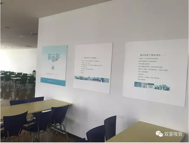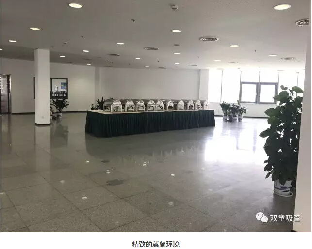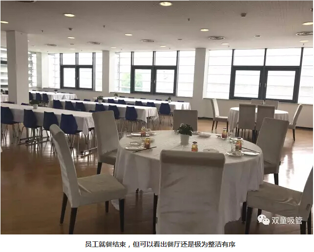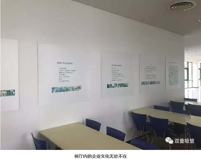 在參觀完文化展區(qū)和產(chǎn)品展區(qū)之后,時間已經(jīng)到12點半,“雙童”樓仲平和李二橋來到了員工餐廳,體驗菲尼克斯飲食文化。雖然由于時間關(guān)系,我們沒有看到員工們用餐的情景,但是通過餐廳簡潔有序、明快的擺設(shè)風(fēng)格、無處不在的文化標(biāo)語,也能看出菲尼克斯獨特的人文精神和企業(yè)文化。