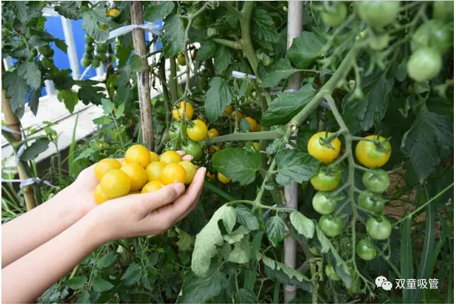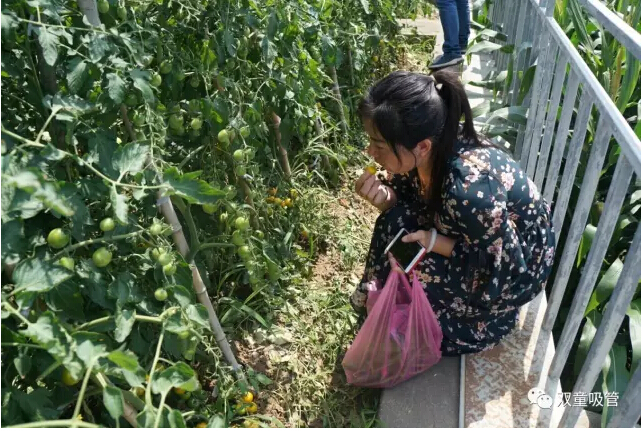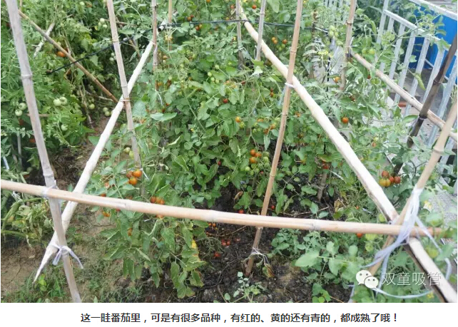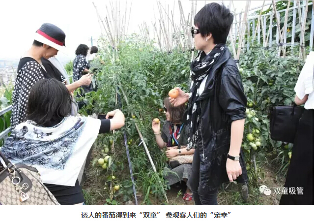 再看看一旁的番茄,紅的、黃的……一口咬下去,盡是香甜可口!誘人的番茄每次都會(huì)得到來“雙童” 參觀客人們的“寵幸”,大家也都很喜歡在我們的菜園子里多呆一會(huì),體會(huì)一下當(dāng)“快樂農(nóng)夫”的感覺!