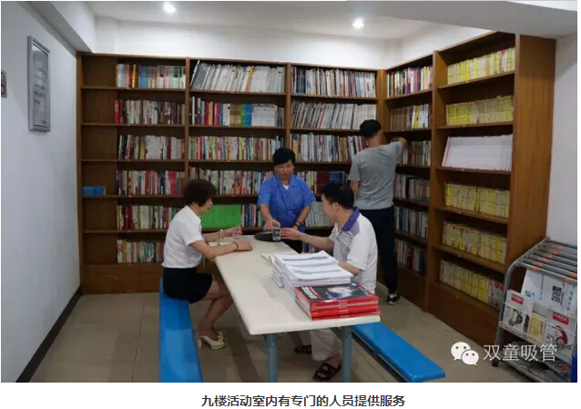 來到九樓的員工活動室,電視、電腦、乒乓球桌等設(shè)施一應(yīng)俱全。下班后,員工們可以打乒乓球,唱卡拉OK,看電影;還可以在圖書室看看書。我們還設(shè)立了服務(wù)臺,有一名服務(wù)人員為員工們進行服務(wù)。