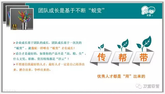 在“雙童”,傳、幫、帶已經(jīng)是最主要的人才培育方式,只有唯才是用、授權徹底、目標管理,才能夠使管理者真正發(fā)揮自己的作用,為企業(yè)做最大價值的貢獻。