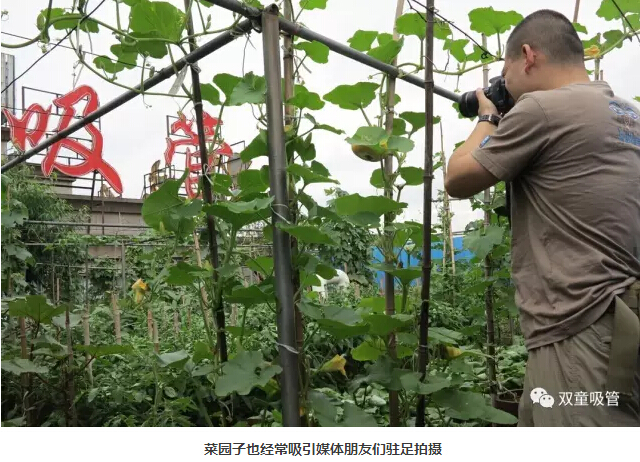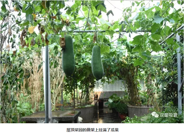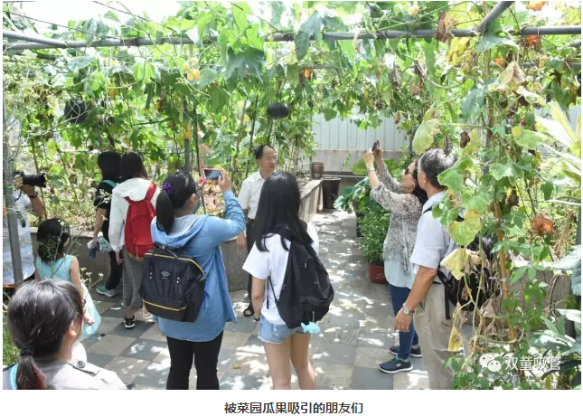 這樣的場景也總會吸引來“雙童”參觀及媒體朋友們駐足觀賞,拍照留念,贊嘆屋頂菜園的瓜果!
