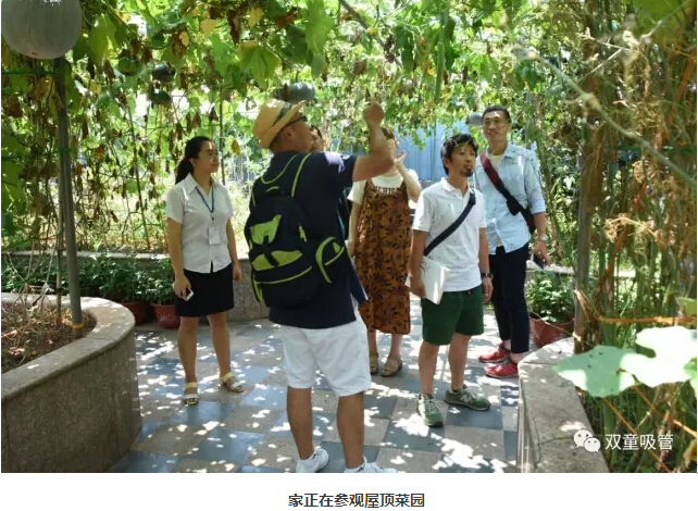 日本客人們也在參觀過程中,實地感受了“雙童”綠色生態(tài)的廠區(qū)環(huán)境。尤其是到了九樓空中菜園后,大家對滿園的瓜果蔬菜非常感興趣,認(rèn)為即使在日本,也很少有這么好的空中菜園!