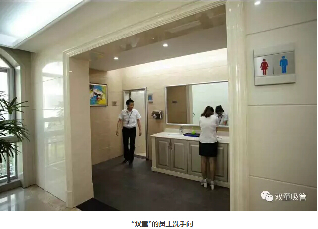 “雙童”樓仲平笑著回答:“當(dāng)然了!‘雙童’十余個公共洗手間都是以五星級硬件標(biāo)準(zhǔn)進行裝修的,其實衛(wèi)生間最能體現(xiàn)出一個企業(yè)的文化,衛(wèi)生間應(yīng)該是一個企業(yè)最干凈的地方,連衛(wèi)生間都打掃不干凈的企業(yè),怎么可能生產(chǎn)出讓人放心的產(chǎn)品!”