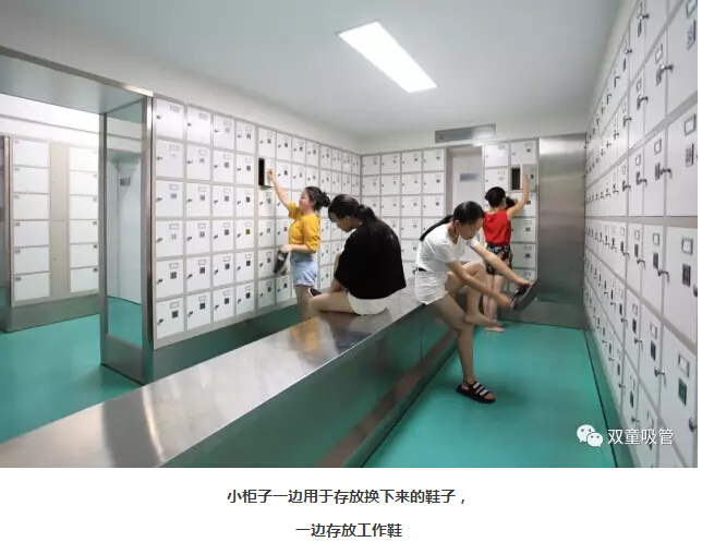 1、員工進入車間的第一步,就是要在更鞋區(qū)將自己的鞋子換為工作鞋。
