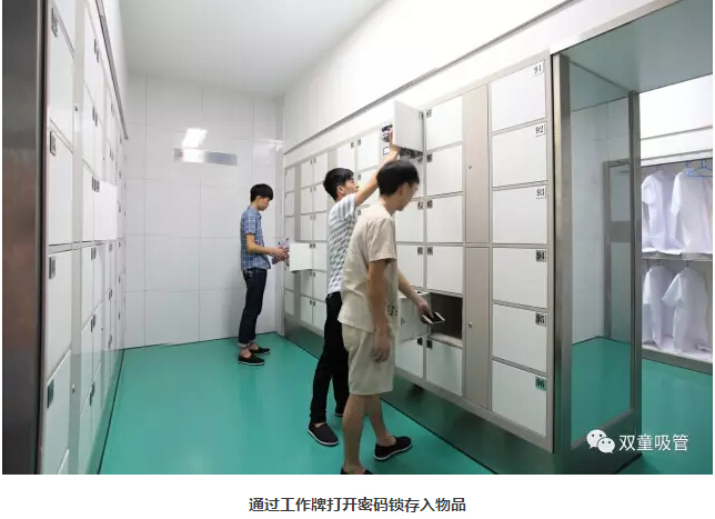2、員工來到第一更衣區(qū),將自己的私人衣物儲存在柜子中。