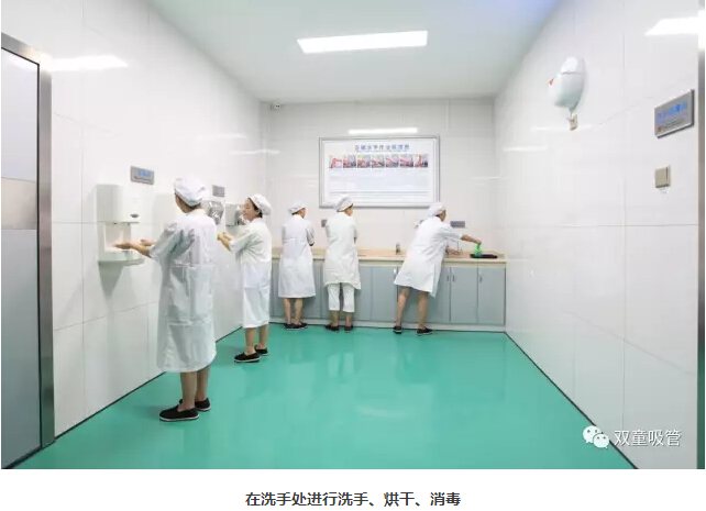 4、整理完衣物后,來到洗手消毒間,進行洗手、烘干、消毒。