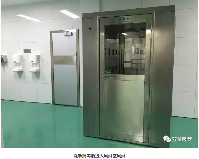 5、完成洗手消毒之后,要進入風(fēng)淋室進行風(fēng)淋除塵。
