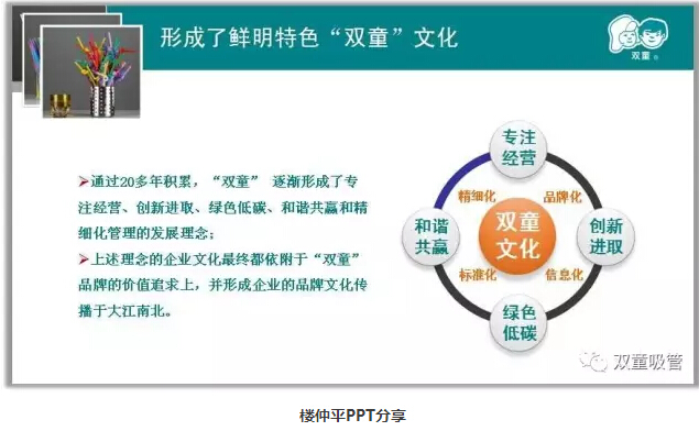 很多人會很好奇,“雙童”作為一家吸管制造企業(yè),為什么會吸引大量社會和媒體關(guān)注呢?樓仲平坦言:這就是我們一直以來塑造差異化亮點(diǎn),并做到“人無我有,人有我先”,用“講故事”的形式把“雙童”品牌傳播到大江南北的結(jié)果!當(dāng)然,這之前有一個前提:一定要先把企業(yè)做好!