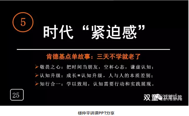 時代“緊迫感”:“雙童”樓仲平在時隔幾天去肯德基時,發(fā)現(xiàn)肯德基已經(jīng)在自助點(diǎn)單了,而自己還在傻傻的等工作人員點(diǎn)餐!這也告訴我們要不斷地學(xué)習(xí),三天不學(xué)你就老了!舊觀念終結(jié),發(fā)展模式層出不窮,新的生活方式不斷呈現(xiàn),行業(yè)變化之快,超出想象,如果你不學(xué)習(xí)就要被淘汰,你就“老了”!
