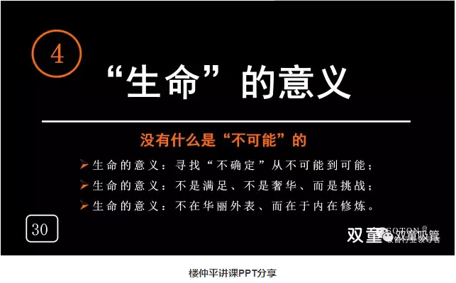 “生命”的意義:“雙童”樓仲平通過自己的經(jīng)歷告訴大家沒有什么是不可能的:沒人設(shè)計(jì)節(jié)能降耗,就自己學(xué)設(shè)計(jì),在樊登讀書會金華分會周年慶促銷活動時,樓仲平用六個小時爭取到58個會員。我們要選擇自己想要的方式選擇自己的人生,千萬不要抱怨,抱怨是最大的瓶頸!生命的意義在于尋找“不確定”,從不可能到可能,在于不斷地挑戰(zhàn)和內(nèi)在修煉!