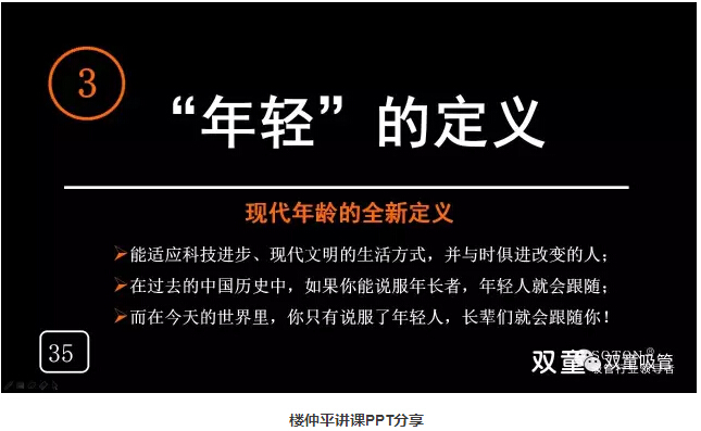 “年輕”的定義:能適應(yīng)現(xiàn)代全新的生活方式,并與時俱進(jìn)的人就是年輕人!在過去的中國歷史中,如果你能說服年長者,年輕人就會跟隨;而在今天的世界里,你只有說服了年輕人,長輩們就會跟隨你!
