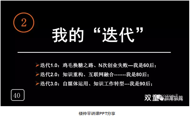 我的“迭代”:“雙童”樓仲平通過自身不斷的學(xué)習(xí):在浙大學(xué)習(xí)進(jìn)修、學(xué)習(xí)電腦設(shè)計(jì),認(rèn)知到自媒體作用,與年輕人鏈接、培養(yǎng)團(tuán)隊(duì),自己轉(zhuǎn)變教育工作……不斷否認(rèn)自我、重新認(rèn)知,實(shí)現(xiàn)迭代!
