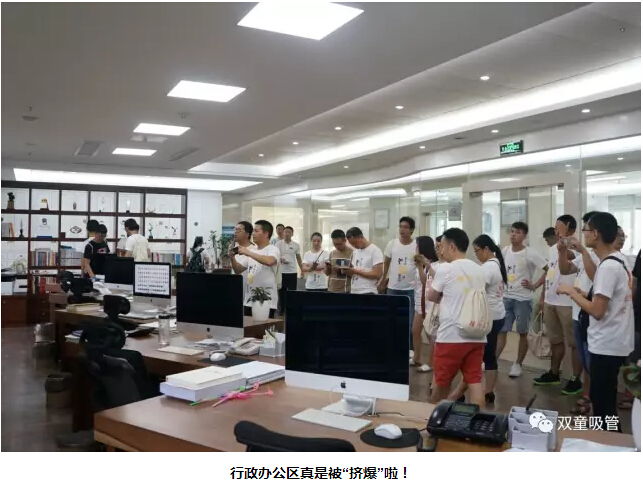 為了讓大家更好的參觀了解“雙童”,我們也特地將此團(tuán)分成三批進(jìn)行接待,這可忙壞了接待人員!往往是這批參觀隊(duì)伍剛走,第二批、第三批參觀隊(duì)伍就已經(jīng)在后面候著啦!大家在看到“雙童”的廠區(qū)環(huán)境后紛紛感嘆“雙童”綠色生態(tài)的廠區(qū)環(huán)境!