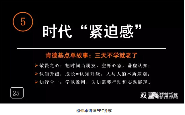 時(shí)代“緊迫感”:“雙童”樓仲平在時(shí)隔幾天去肯德基時(shí),發(fā)現(xiàn)肯德基已經(jīng)在自助點(diǎn)單了,而自己還在傻傻的等工作人員點(diǎn)餐!這也告訴我們要不斷地學(xué)習(xí),三天不學(xué)你就老了!舊觀念終結(jié),發(fā)展模式層出不窮,新的生活方式不斷呈現(xiàn),行業(yè)變化之快,超出想象,如果你不學(xué)習(xí)就要被淘汰,你就“老了”!