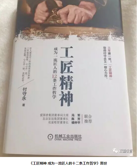 在國(guó)內(nèi),付守永先生是著名的“工匠精神第一人”,他寫就了《工匠精神》、《路演大師》等暢銷著作,為企業(yè)界帶來了實(shí)實(shí)在在的經(jīng)營(yíng)指導(dǎo)和管理方略。在付守永先生的著作《工匠精神 成為一流匠人的十二條工作哲學(xué)》的開頭,就是他邀請(qǐng)“雙童”樓仲平為此書寫的序文!看來付守永先生對(duì)“雙童”的”工匠精神“也相當(dāng)認(rèn)可。想看看樓仲平是如何詮釋”雙童“匠心的嗎?下面妞帶大家來看看!
