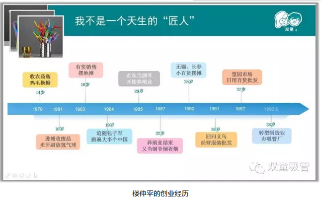 1994年4月,偶然的機(jī)會(huì)讓我再次選擇“一根小吸管”作為重新創(chuàng)業(yè)的起步,無數(shù)次的創(chuàng)業(yè)失敗使我在經(jīng)營(yíng)“雙童”之后選擇了更多的堅(jiān)守和專注,從而逐漸拋棄了一夜暴富的急功近利,減少了唯利是圖的投機(jī)心理,深刻認(rèn)知到創(chuàng)辦企業(yè)的意義所在,始終關(guān)注事物本身,全身心投入把事情做到更好。