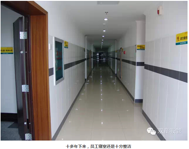 再來看看建筑細節(jié):為了防止噪音,廠區(qū)所有的窗戶都采用了雙層真空隔音玻璃;企業(yè)內部一次性裝了300多臺格力空調;頂尖品牌的美心防盜門、TOTO衛(wèi)浴用品;幾萬平方米如鏡面般的大理石和諾貝爾高級瓷磚鋪設而成的廠區(qū)室內地面;牢固耐用的不銹鋼高低床鋪……有了高品質硬件為基礎,再加上完善的后期管理,十多年過來了,硬件環(huán)境沒有受到破壞的同時,員工的素質逐步得到了提升,企業(yè)的硬件維護成本大大降低。