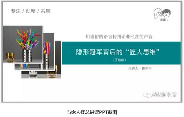 樓仲平:我堅信一個國家的持久繁榮取決于中小企業(yè)的成功,而不是大公司,特別是在人口眾多的中國。如果只指望大公司,必然是不夠的。而中小企業(yè)的成功取決于其對業(yè)務的專注程度。不能過度多元化。你需要集中于某一個行業(yè)。如果你能做精,那么將能長久地立于不敗之地。