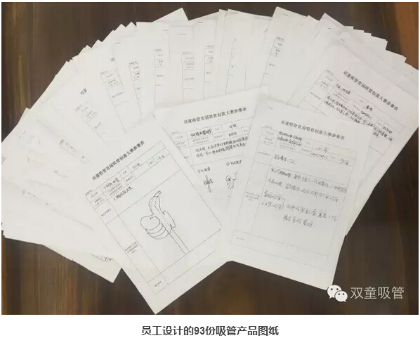 “僅這一個小小的水流止回閥,我們就擁有4項自主知識產(chǎn)權,有效解決了液體回流問題,還避免交叉感染。”樓仲平告訴記者,因為吸管生產(chǎn)是很偏很窄的行業(yè),要想產(chǎn)品有創(chuàng)新、有市場,“雙童”只能靠自己研發(fā),除了產(chǎn)品的外觀、功能外,就連生產(chǎn)設備也要自己研制,他的很多創(chuàng)新都是“困而知之”的產(chǎn)物。為了鼓勵員工參與創(chuàng)新,樓仲平每年都會舉辦產(chǎn)品創(chuàng)新大賽,讓員工們的創(chuàng)新潛力得到最大程度的激發(fā)。現(xiàn)在熱銷的不少新款吸管產(chǎn)品,就來自創(chuàng)新大賽的獲獎作品。2015年,“雙童”的新產(chǎn)品占比超過56%。