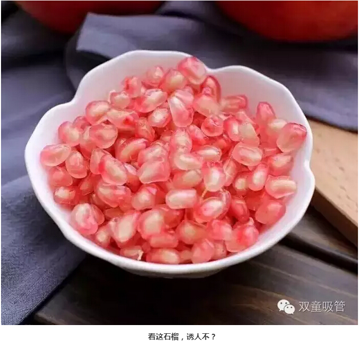 石榴可謂全身是寶:葉子可止瀉、皮曬干可補血養(yǎng)氣,還有疏肝柔肝、寧心定志的作用呢!石榴的寓意更是美好,有著紅紅火火、多子多孫的寓意!要說石榴的剝法,吸管妞做為專業(yè)吃貨,自然有妙招!快戳下圖↓