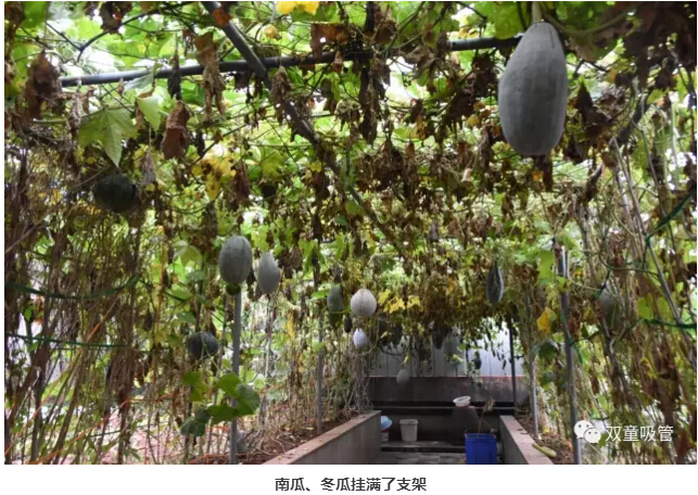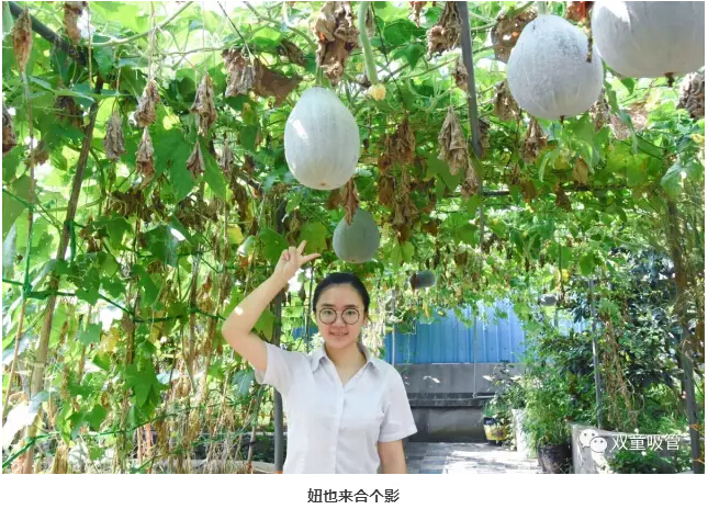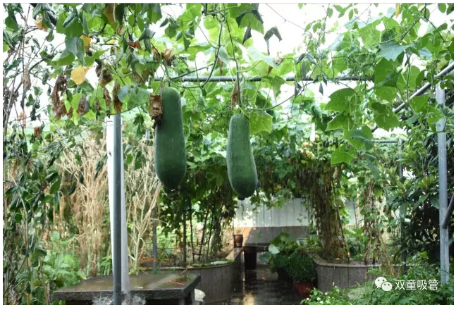 “雙童”屋頂變瓜園,青藤爬滿墻,瓜果都快成“雙童”的代言人啦!每次來“雙童”參觀的朋友們都會駐足觀賞,拍照留念!親愛的粉絲們,看到這里,你是不是也在趕來“雙童”的路上呢?