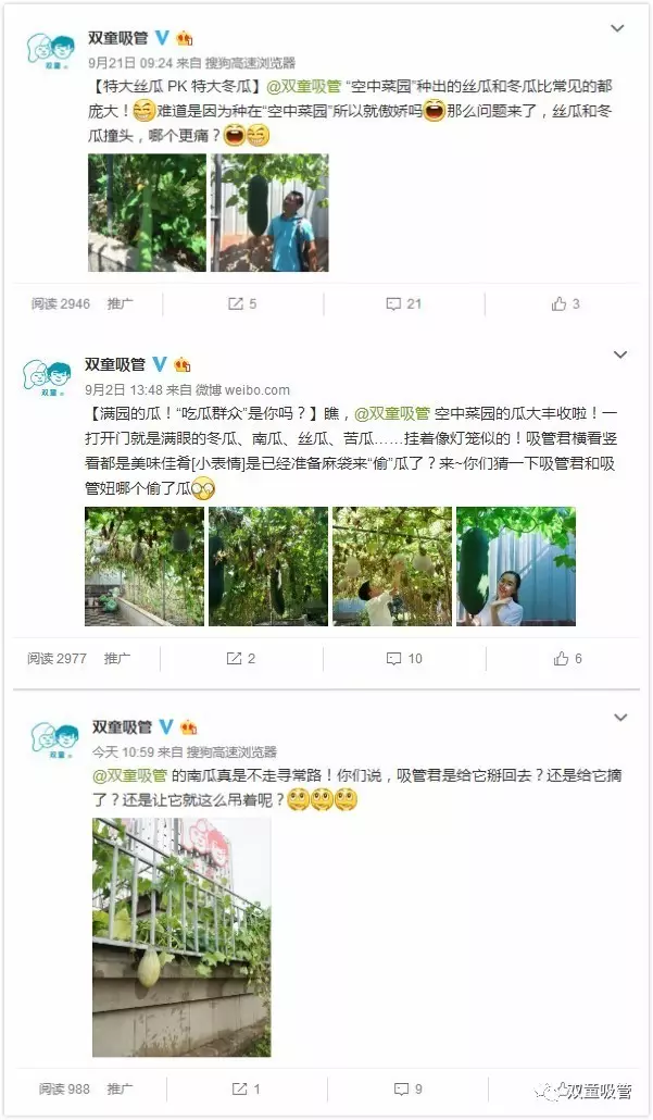 看到“雙童”的屋頂菜園,想必很多粉絲都要流口水啦!近日,吸管君在微博秀了一波又一波菜園瓜果之后!妞實在是看不下去了!決定在微信上好好犒勞(PS:誘惑 [壞笑])一下可愛滴粉絲們!來,往下看!